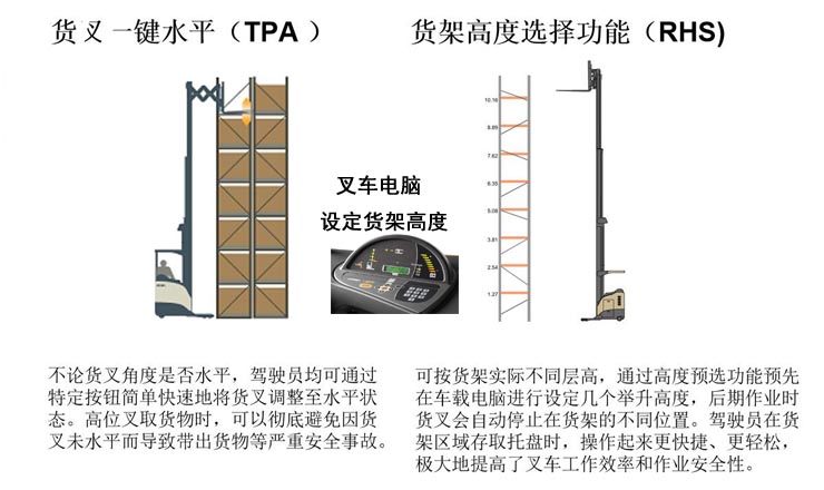 本款叉車獨創(chuàng)性技術(shù)一鍵升高到位取貨,