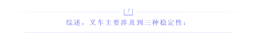 為了保持叉車的穩(wěn)定,重心必須位于穩(wěn)定三角形內(nèi),否則即為不穩(wěn)定。當重心移動到驅(qū)動軸前面,則發(fā)生向前傾翻;當重心移動到兩前輪中心和轉(zhuǎn)向支點連線的外側(cè)時,則發(fā)生側(cè)翻。