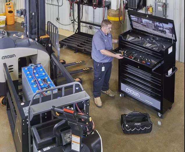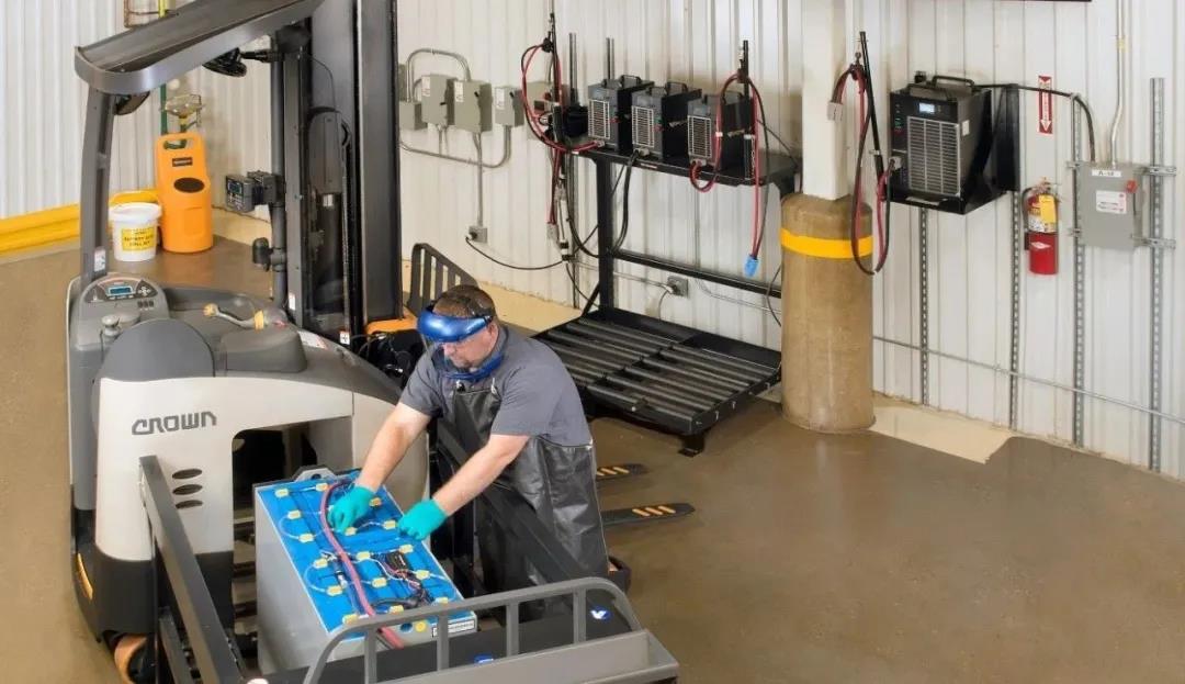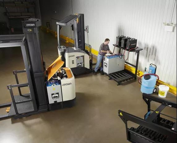 因此,電池液位需要經(jīng)常檢查,確保每個電池單體內(nèi)的液位都處于正常水平。電池中水的消耗跟使用頻率有關,倉庫管理者應該根據(jù)叉車的使用強度,制定電池檢查規(guī)范。