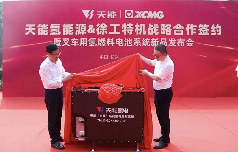 2021年9月28日,天能氫能源與徐工集團旗下公司徐州徐工特種工程機械有限公司(下稱“徐工特機”)簽訂戰(zhàn)略合作協(xié)議。簽約儀式現(xiàn)場,天能氫能源正式發(fā)布了徐工叉車用氫燃料電池系統(tǒng)新品。