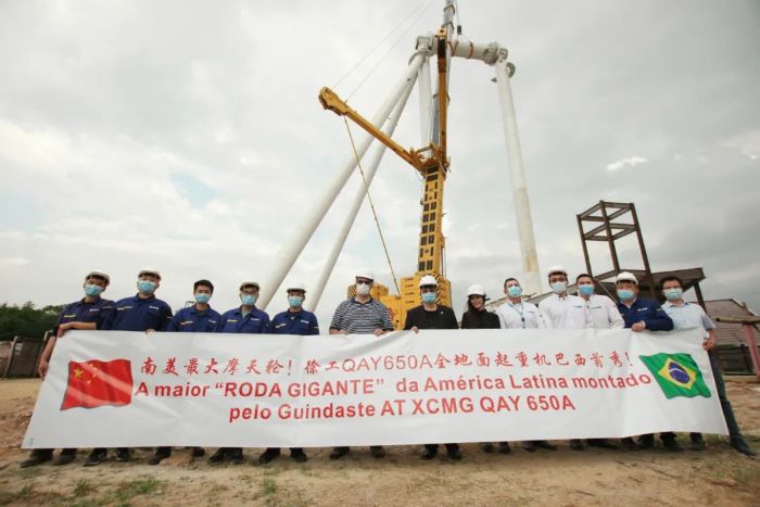 中國出口南美最大全地面起重機徐工QAY650A首吊拉丁美洲最大摩天輪