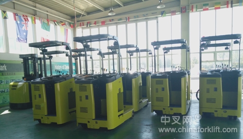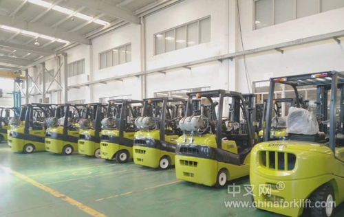 在結(jié)束對鄭副總的采訪后,應青島克拉克崔光浩部長的邀請,參觀了青島克拉克工廠生產(chǎn)線、成品庫及展廳??死瞬孳囋O備系列廣泛,包括液化石油氣及柴油驅(qū)動的叉車,以及全新系列的電動叉車、倉儲設備,符合多種不同行業(yè)的設備需求。